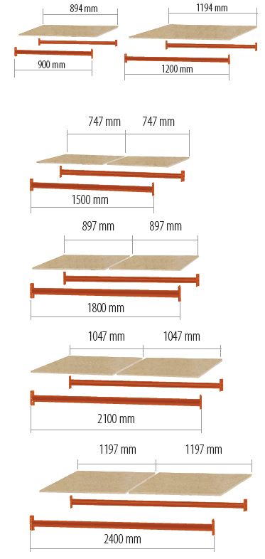 * A partir de 1200 mm de largo los tableros de aglomerado se entregará en 2 piezas.