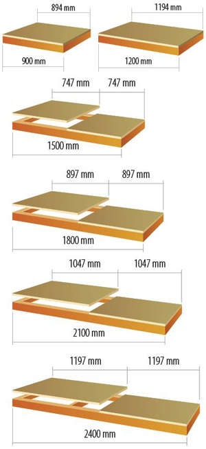 * A partir de 1200 mm de largura el aglomerado se entregará en 2 piezas.