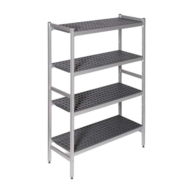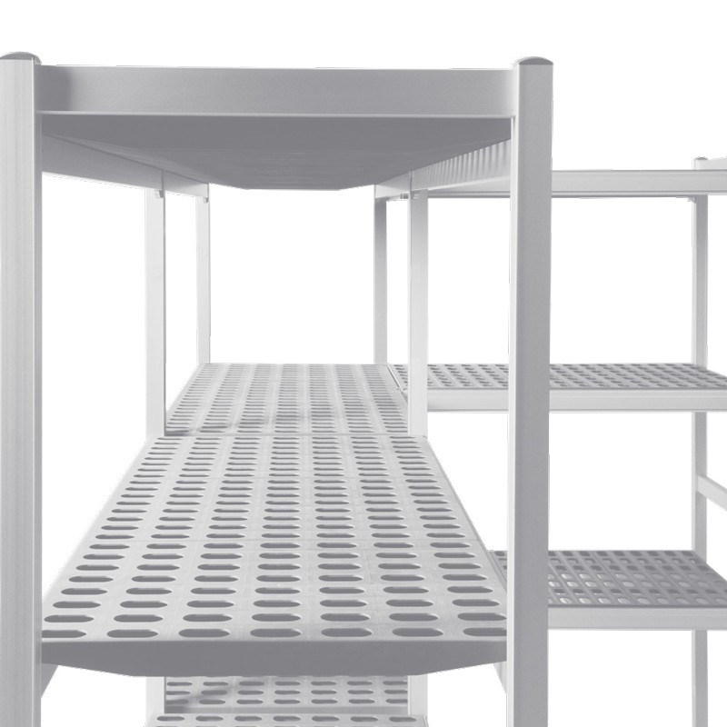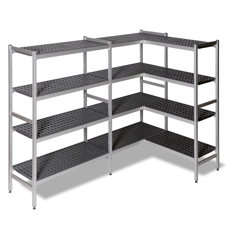 Estanterías inoxidables fabricadas en duraluminio anodizado y estantes de polipropileno. Especialmente diseñadas para uso alimentario, pueden soportar temperaturas entre -40°C y más +85°C.